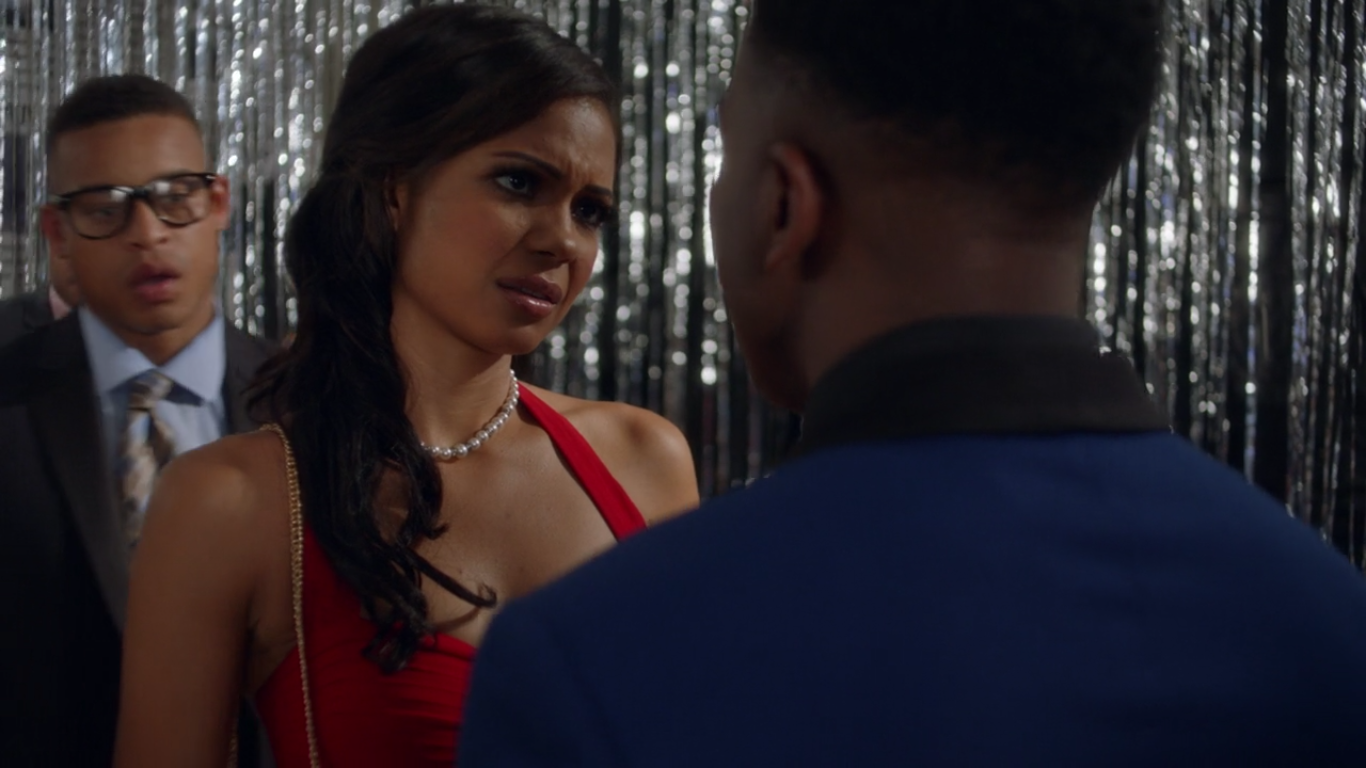 A little while later, Jacquie spots Paul and Aaron at a table ready to play Uno. Jacquie bests the two 6 games in a row and are having a nice time. Predictably, Daniel gets jealous that Jacquie isn't fretting over him so he comes over and assaults Aaron, Aaron and Daniel fight w Daniel having the upper hand. The Chaperones break up the fight and shut the party down. Jacquie checks in on Aaron and reveals she knows about his crush on her. He drives her home and she kisses him.